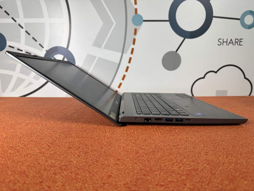 Designul acestui model este destul de minimalist și elegant. Carcasa din plastic este robustă, cu un capac metalic care adaugă un aspect premium. La doar 1.76 kg, este ușor de transportat, ceea ce îl face potrivit pentru studenți și profesioniști care se deplasează frecvent. Laptopul este, de asemenea, destul de subțire, având o grosime de 17.9 mm, ceea ce îl face să pară mai modern decât multe alte modele din această categorie de preț.