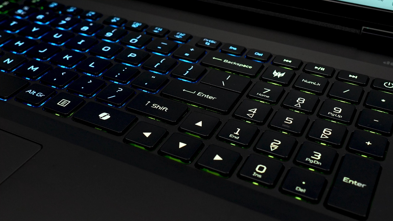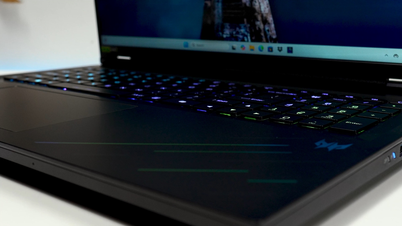 Tastatura MagKey 4.0 redefinește precizia. Tastele WASD și săgețile sunt interschimbabile, au feedback mecanic tactil și activare magnetică, un upgrade major pentru gameri. Fiecare tastă este iluminată individual, oferind control total asupra RGB-ului. Touchpadul este generos, precis, și se integrează perfect în zona de palm rest iluminată subtil, detalii care adaugă eleganță și funcționalitate.