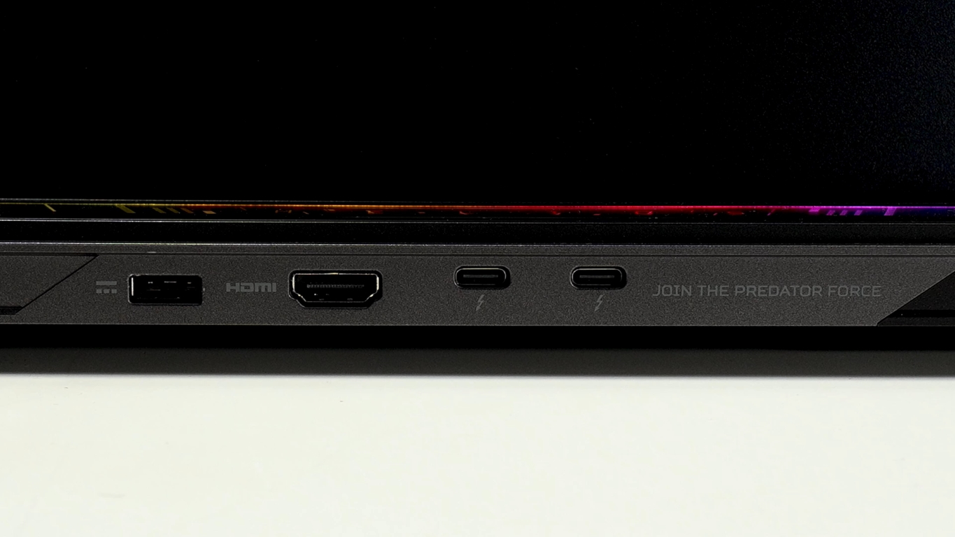 Pe partea de conectivitate, Predator Helios 18 AI sparge barierele. Vine echipat cu Thunderbolt 5, care oferă până la 120Gbps lățime de bandă în modul boost și suportă conexiuni multiple 4K. Include Wi-Fi 7 pentru conexiuni stabile și ultra-rapide, plus porturi USB-A, HDMI 2.1, și cititor de carduri. Indiferent dacă vrei să faci live, să conectezi multiple monitoare sau să transferi fișiere masive, acest laptop face față fără efort.