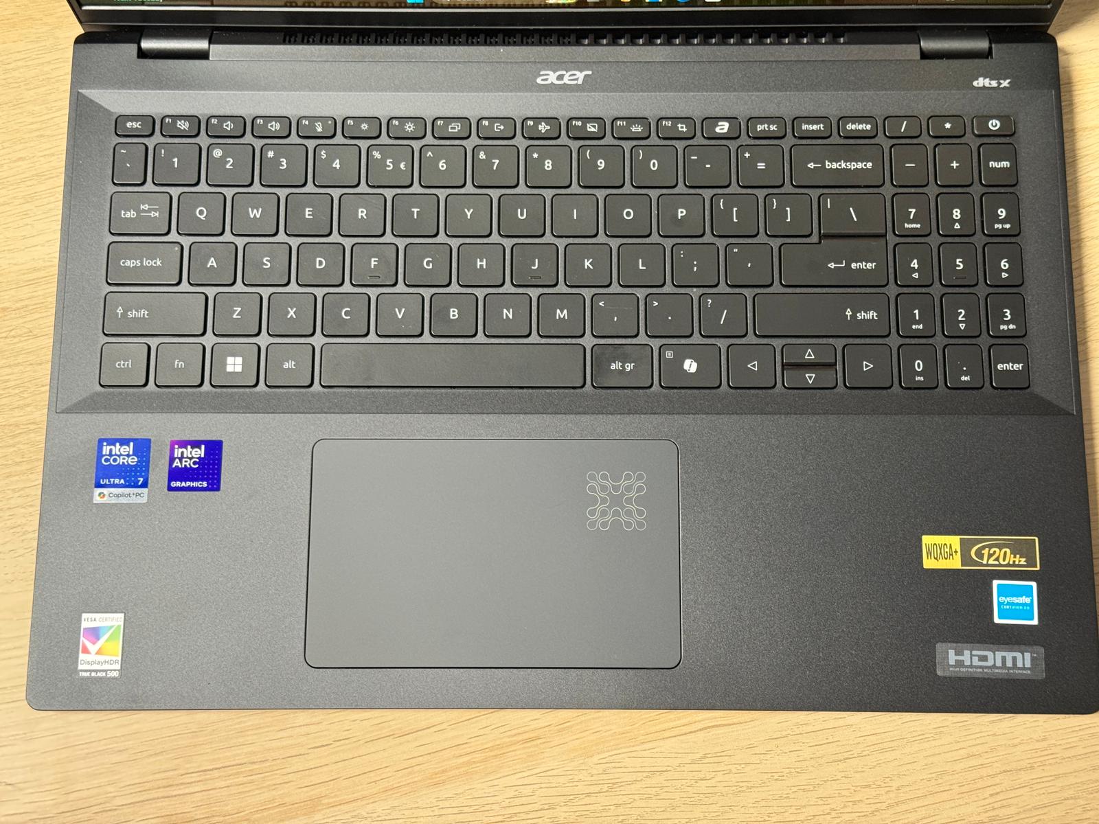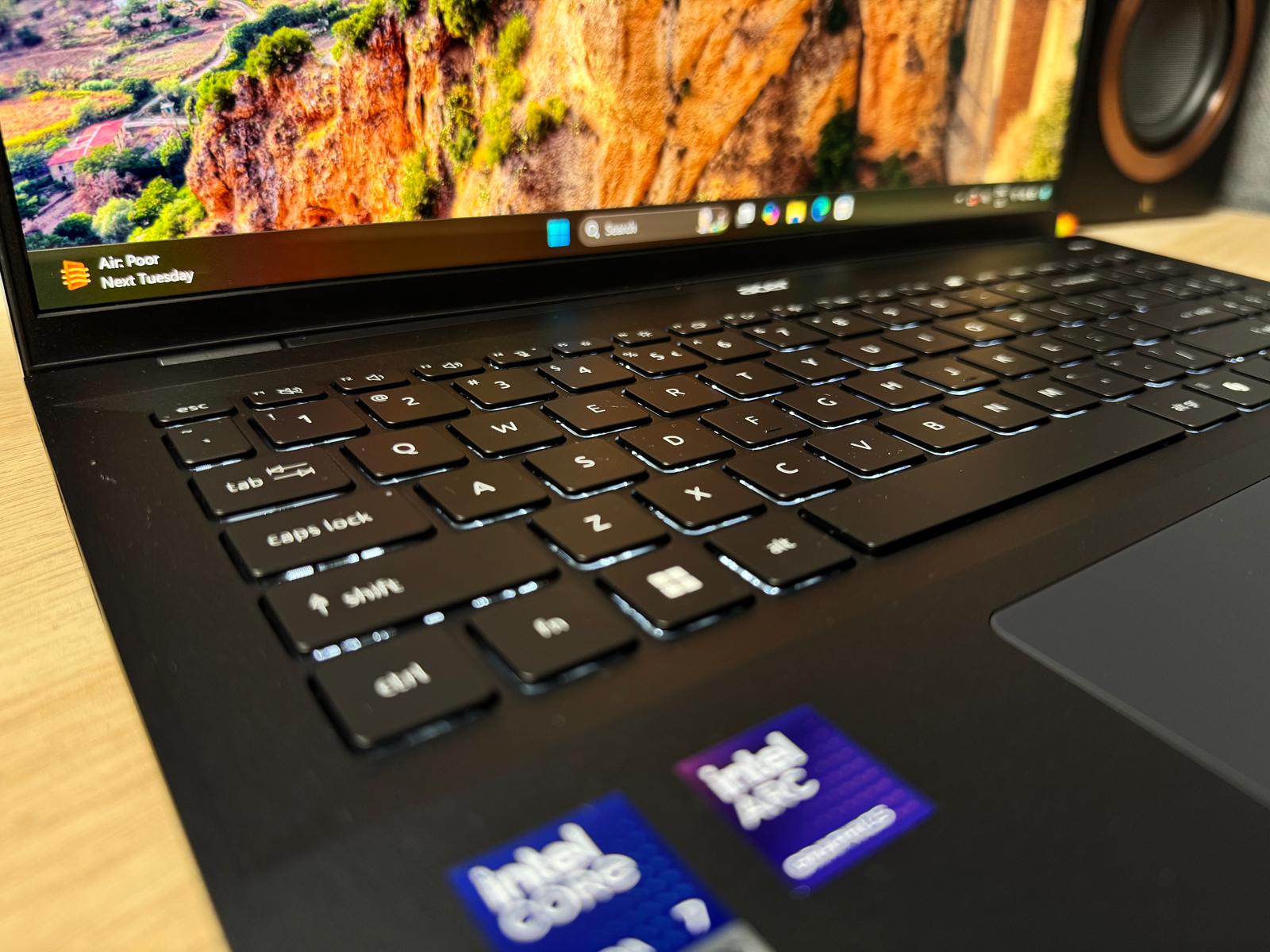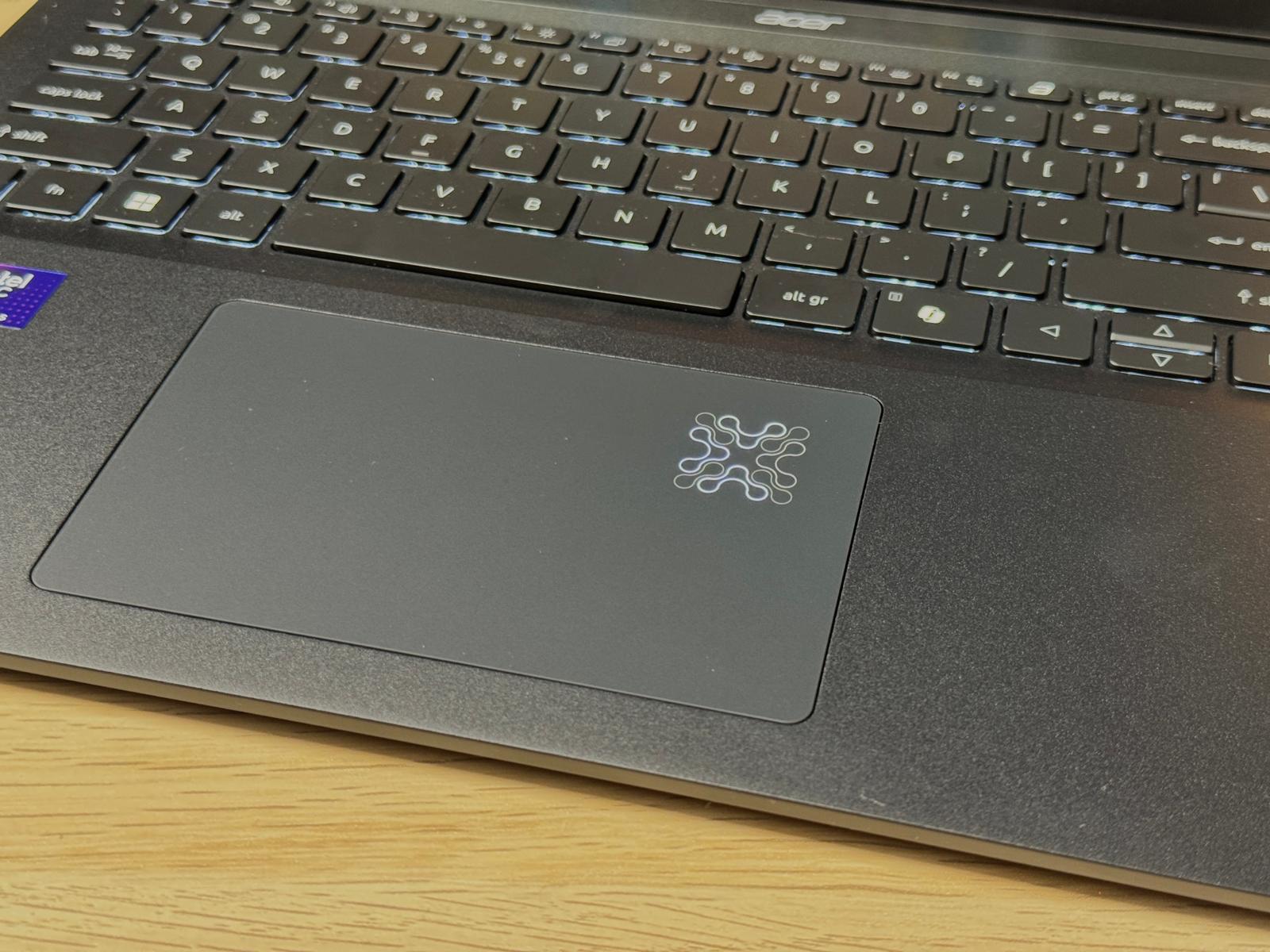 Tastatura iluminată este confortabilă și bine optimizată pentru productivitate. Ai indicatori pentru CapsLock și microfonul dezactivat, ceea ce ajută mult în conferințe sau filmări. Trackpadul din sticlă Corning Gorilla Glass este mare și precis, cu suport pentru gesturi complexe. Include și Copilot Key, adică o scurtătură directă către funcțiile AI integrate, pentru momentele în care vrei să generezi rapid conținut sau să primești sugestii.