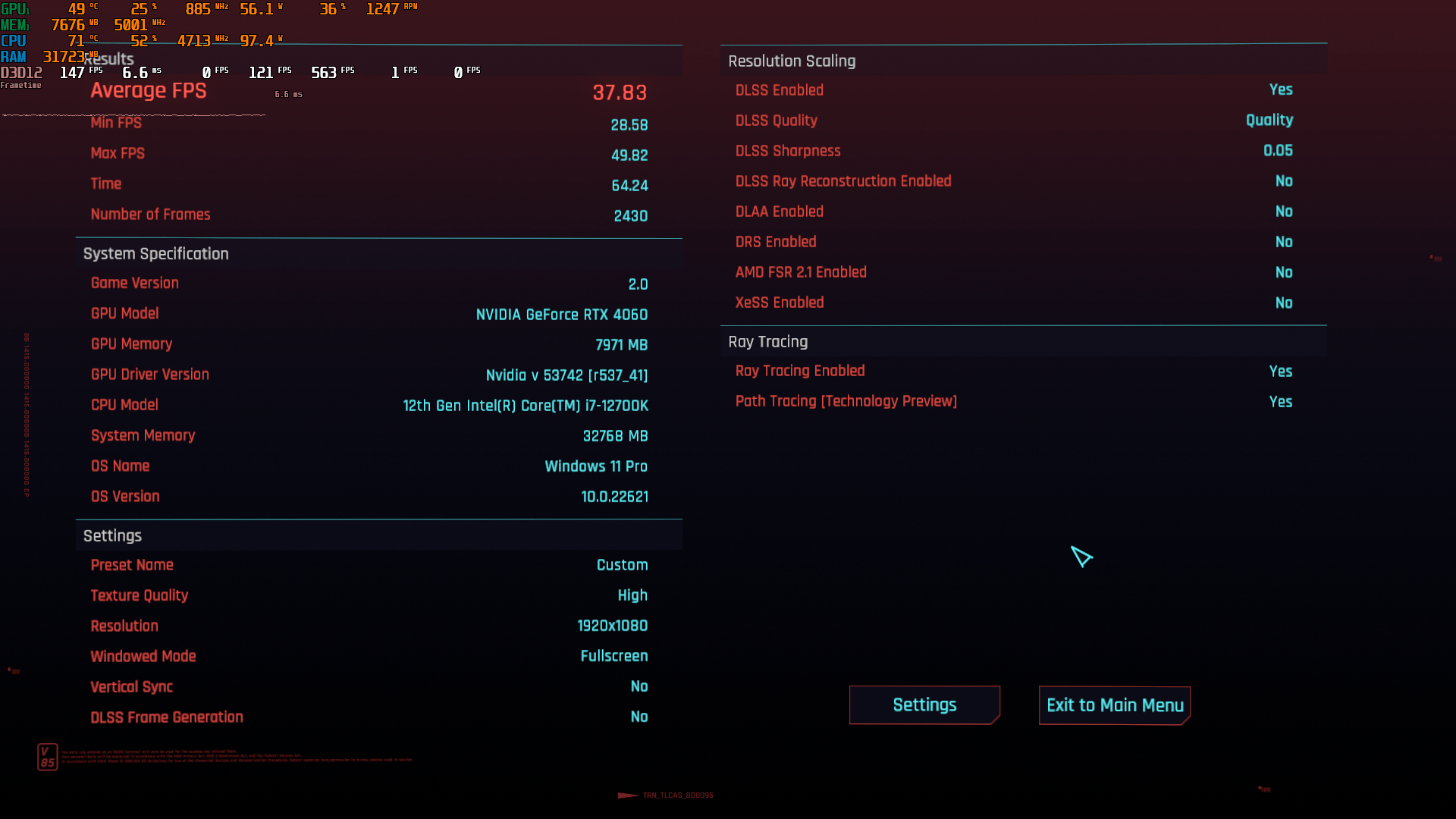 DLSS QUALITY FRAME GENERATION OFF RTX ON PATH TRACING ON RAY RECONSTRUCION OFF Posted by Andrei 26/09/2023 0 Min Read Share:ArticolApreciază:Apreciază Încarc...