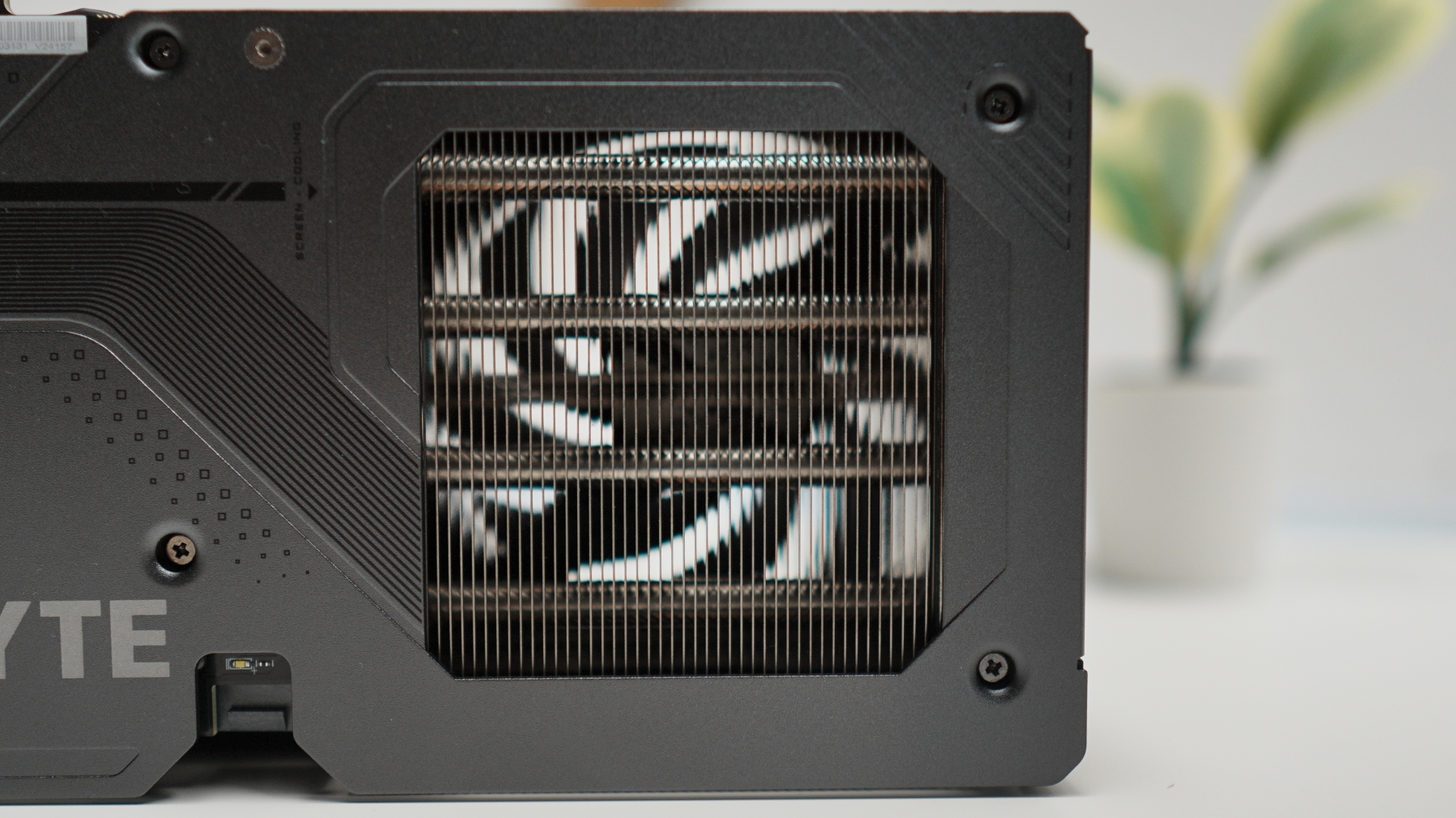 Pe partea de racire, baza din cupru acopera GPU-ul, memoria si VRM-urile, iar gelul termoconductor si radiatoarele extinse ajuta la disiparea caldurii. Pe spate gasim zona de Screen Cooling, care permite evacuarea aerului cald prin PCB, un detaliu mic, dar eficient in utilizarea reala.