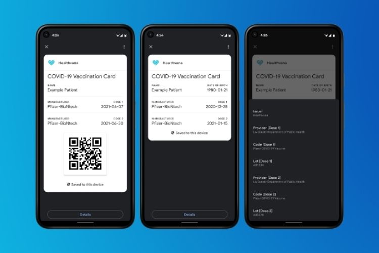 Google deschide sistemul de legitimații încorporat în Android pentru a permite utilizatorilor Android să stocheze pe telefon un card de vaccin digital, pe care îl numește COVID Card. Funcția va fi lansată inițial în SUA și se va baza pe sprijinul furnizorilor de servicii medicale, al administrațiilor locale sau al altor organizații autorizate să distribuie vaccinurile COVID. Funcția va permite, de asemenea, stocarea rezultatelor testelor COVID.