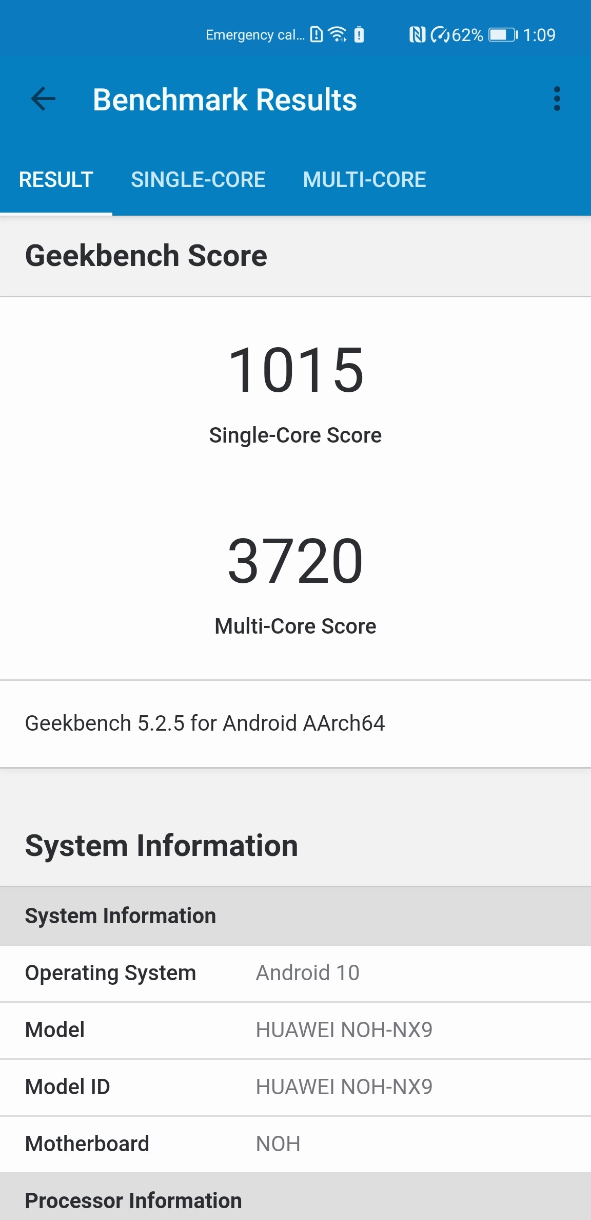 Huawei Mate 40 Pro are pe cel mai recent chipset: Kirin 9000. Acesta este fabricat pe 5nm, este octa-core, care are un nucleu Cortex-A77 la 3,13 GHz, 3 nuclee Cortex-A77 la 2,54 GHz și 4 Cortex-A55 la 2,05 GHz. Iar pe partea video, aesta vine cu un GPU Mali-G78. Am instalat GeekBench 5, deși nu mai folosesc de mult timp teste sintetice pe telefoane, am fost curios de ce rezultate obține telefonul în modul normal și în Performance. Astfel acesta a obținut 3380 puncte în Multicore și 928 de puncte în Single core, iar în modul Performance acesta a obținut 3720 puncte la Multicore și 1015 la Single core. Avem parte de un procesor de top, capabil să ruleze orice, așadar nu ne facem probleme la acest capitol.