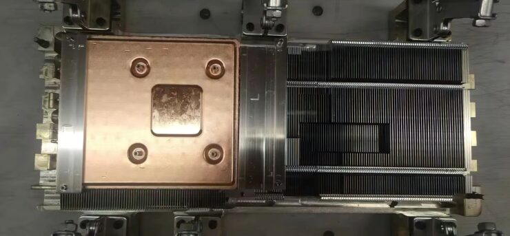 Există, de asemenea, imagini ale heatsink-ului în sine împărtășite de cel care a divulgat informația, care arată un cold plate mare, care ar putea fi un vapor chamber și o cantitate nebună de heat pipe-uri, 13 cel puțin ceea ce ne putem da seama din imagine.