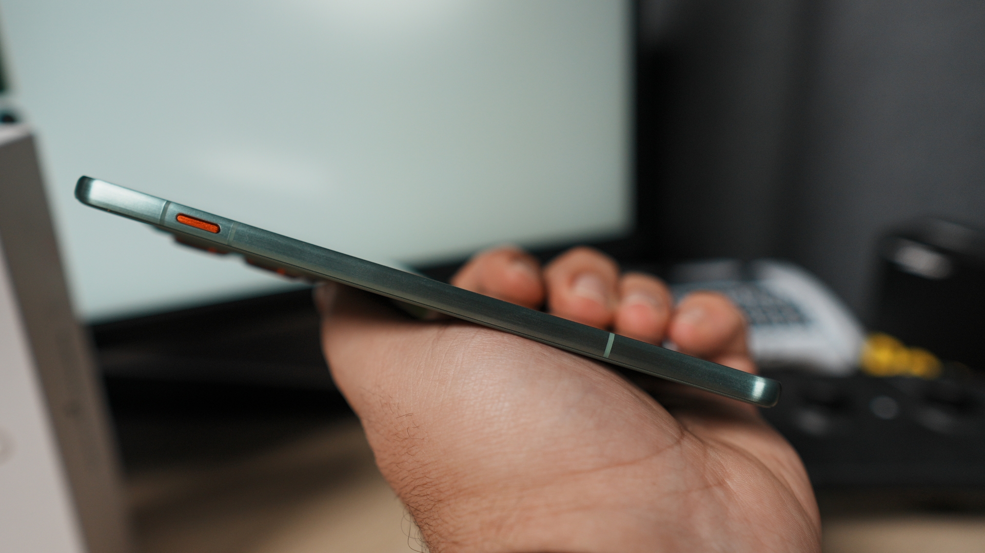 Varianta Lily Pad, cea pe care o am și eu, amplifică această impresie. Nuanța este luminoasă, calmă și delicată, dar în același timp suficient de distinctă încât telefonul să nu se confunde cu nimic din jurul lui. Este genul de estetică pe care o apreciezi și din apropiere, unde vezi detaliile fine, și de la distanță, unde telefonul își păstrează identitatea.