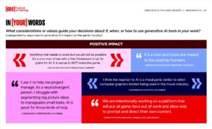 Deși utilizarea GenAI este în creștere, percepția generală asupra impactului său rămâne una controversată. O parte semnificativă dintre dezvoltatori consideră că inteligența artificială generativă are un efect negativ asupra industriei jocurilor video.
