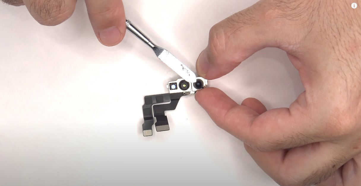 Acesta va fi probabil folosit pentru a transfera căldura în mod eficient, ceea ce înseamnă că vor exista mai puține șanse ca A16 Bionic să se blocheze termic atunci când se aplică o sarcină extinsă. Trecând mai departe, poate cea mai mare schimbare pe care Apple a introdus-o la iPhone 14 Pro Max este Insula dinamică, teardown-ul arătând camera TrueDepth, care este formată din senzorii Face ID și senzorul frontal. Aceste module au fost prezente pe iPhone-urile anterioare, dar ce este atât de diferit la acesta?