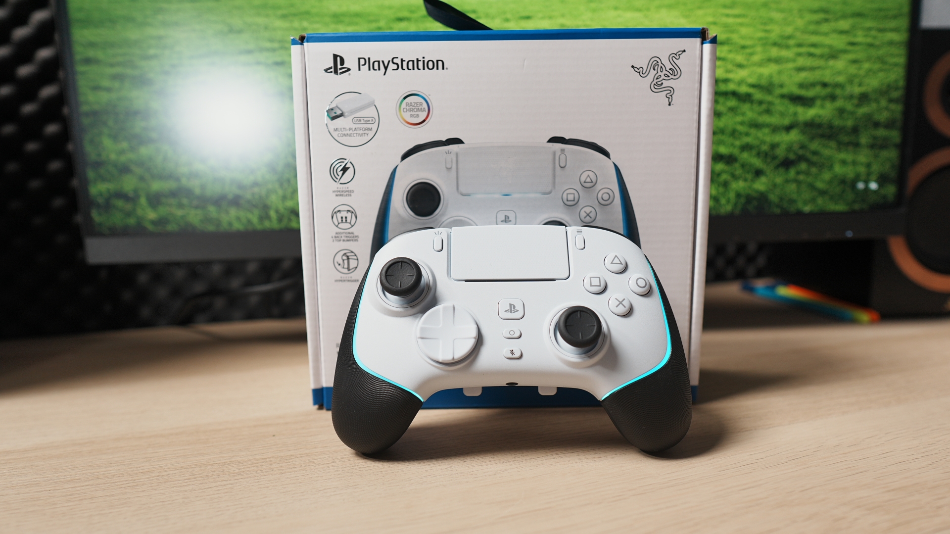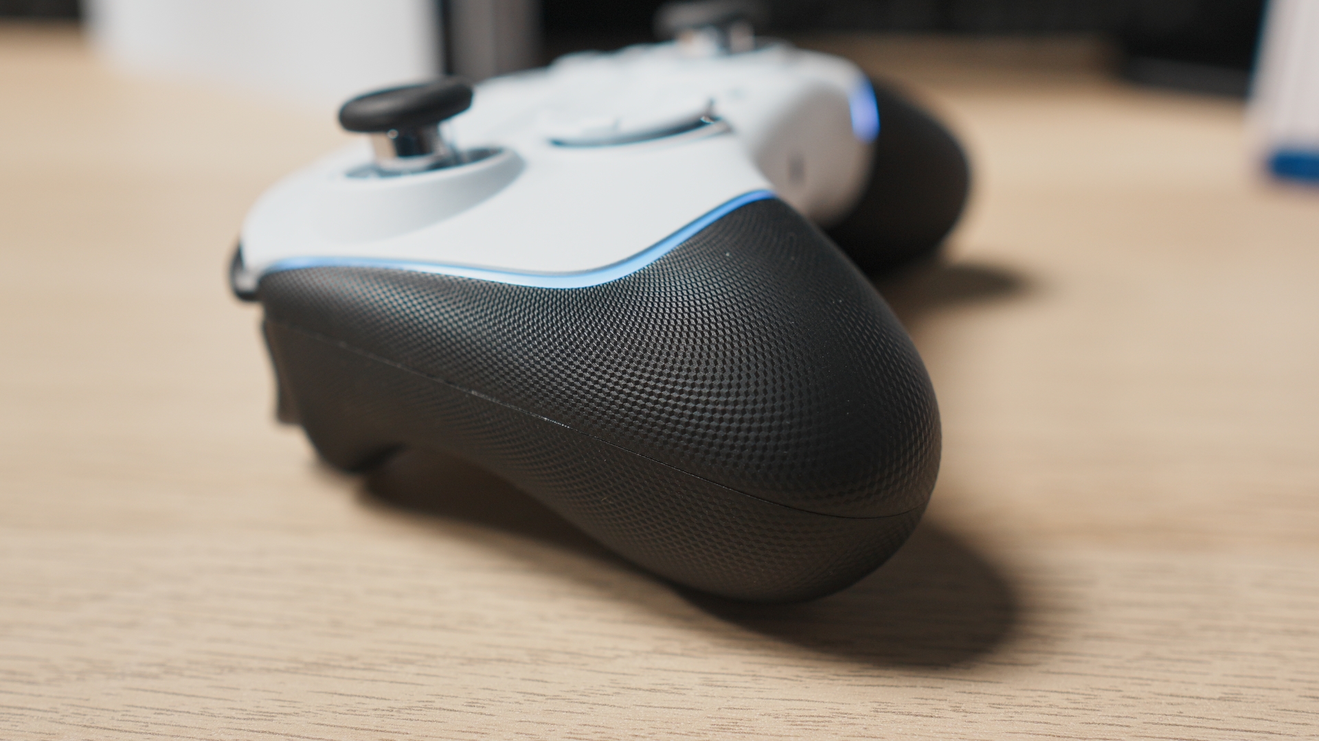 Controllerul este disponibil în două culori, negru și alb, iar varianta testată de mine reușește să iasă în evidență prin contrastul dintre suprafața mată și accentele luminoase ale benzilor RGB. Este un controller care arată la fel de bine pe birou cât și în acțiune, în mâinile unui jucător pasionat.