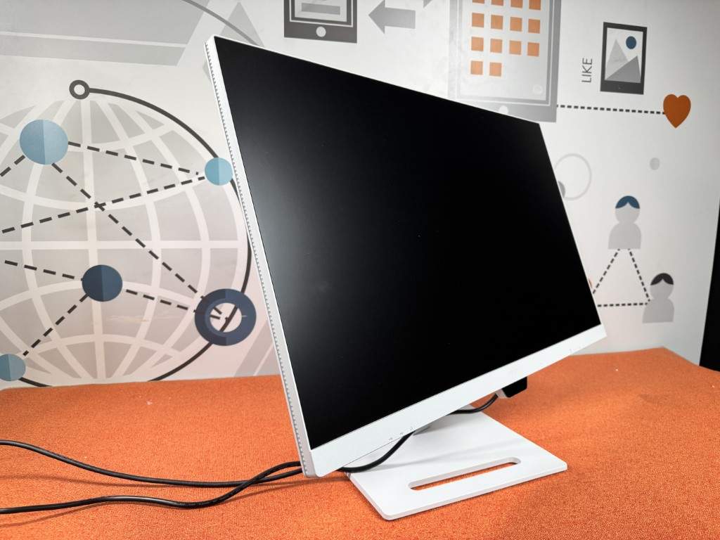 BenQ GW3290QT, deși nu este cel mai subțire monitor disponibil, se remarcă prin designul său modern și elegant, în ciuda sursei de alimentare integrate și a porturilor multiple. Cu un aspect care combină formele albe, rafinate și austere cu o notă subtilă de futurism, monitorul se încadrează perfect într-un birou contemporan.