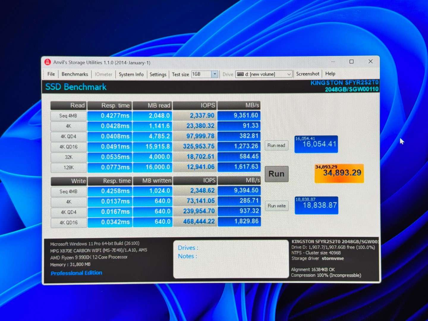 În testul Anvil’s Storage Utilities, SSD-ul a totalizat 34.893 de puncte, semn al unei platforme de stocare extrem de echilibrate, cu performanțe puternice atât la operațiuni secvențiale, cât și aleatorii.