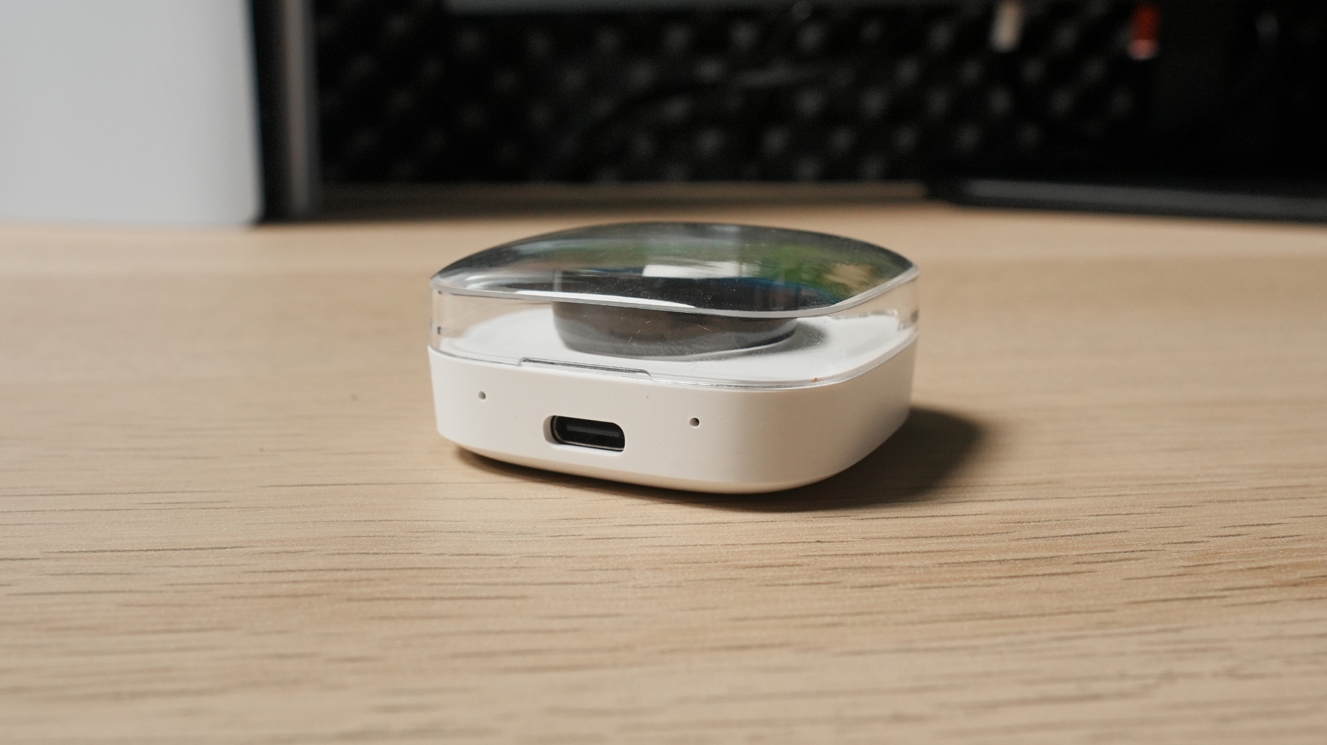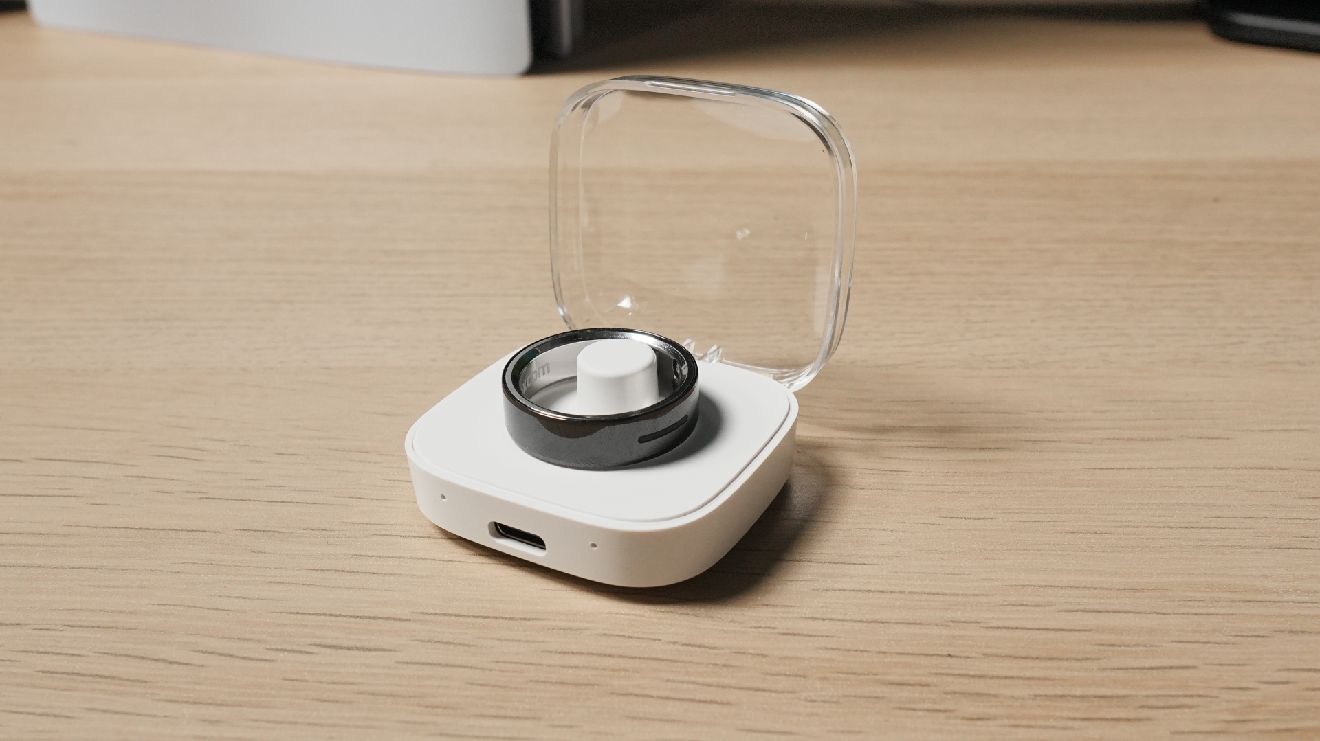 Încărcarea se face magnetic, iar în pachet găsești un suport de încărcare USB-C elegant și ușor de folosit. În aproximativ o oră și jumătate, inelul este complet încărcat și pregătit pentru o nouă săptămână.