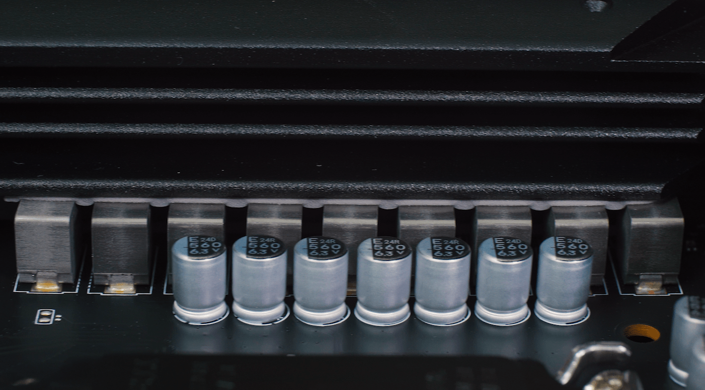 Secțiunea de alimentare este formată din șaisprezece faze, iar în centrul se află controlerul de la Renesas. Pentru fiecare fază, există un MOSFET ISL99390 cu o capacitate de încărcare de 90 A. MOSFET-urile combină tranzistoarele de nivel înalt și scăzut într-un singur pachet.