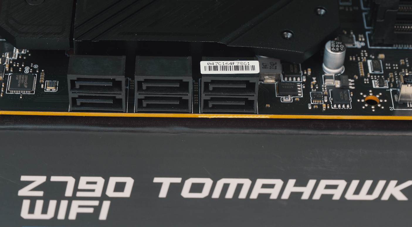 La bord găsim 4 sloturi de memorie RAM DDR5 cu suport pentru DDR5-7200+ (OC) cu o capacitate maximă de 128 GB, două ieșiri video, un DisplayPort 1.4 și HDMI 2.1, trei sloturi de expansiune (2x PCIe x16 și 1x PCIe x1), șapte porturi SATA și patru sloturi M.2, o suită completă de conectori USB (1x USB 3.2 Gen 2×2, 6x USB 3.2 Gen 2, 6x USB 3.2 Gen 1 și 4x USB 2.0). De asemenea, dispune de un modul de rețea Intel cu suport Wi-Fi 6 (ax) și o placă de sunet Realtek ALC4080.