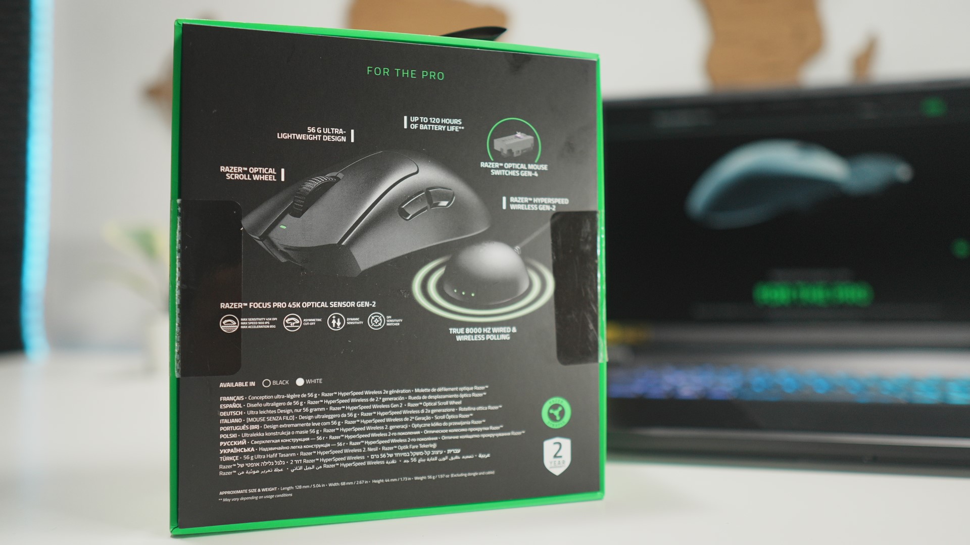 De la primul contact se simte că avem de-a face cu un periferic premium, conceput să ofere stabilitate și precizie indiferent de scenariul de utilizare. Carcasa păstrează o linie curată și o formă bine adaptată mâinii, cu dimensiuni de 128 x 68 x 44 mm, dar surprinde prin greutatea scăzută, doar 56 de grame. Această combinație face ca DeathAdder V4 Pro să fie ușor de controlat chiar și în sesiunile lungi de joc, unde fiecare mișcare contează.