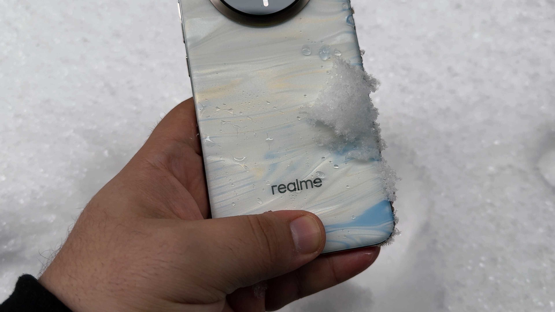 În ceea ce privește designul, realme 14 Pro+ aduce o schimbare de stil semnificativă față de modelele anterioare, oferind o variantă inovatoare care impresionează prin detaliile sale unice. Modelul pe care l-am testat este varianta „sensibilă la temperatură”, care a fost prezentată și în cadrul unui eveniment de la Copenhaga. Acest telefon beneficiază de o carcasă din plastic cu un finisaj alb perlat care are un efect spectaculos: sub 14°C, culorile din spatele carcasei se modifică, oferind un joc subtil de striații albastre, un efect deosebit, dar cu o durabilitate limitată.
