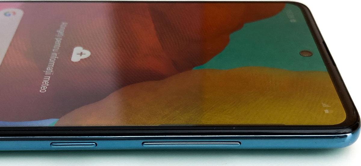 În cele din urmă, avem ecranul de 6,5 inci, care se vede excelent. După cum am menționat mai sus, panoul ecranului de pe Galaxy A51 este de tip Super AMOLED produs de Samsung. Acesta are rezoluție FullHD+, adică 2400 pe 1080 pixeli, oferind un raport de aspect de 20:9. Culorile sunt vii, ecranul este clar, este mare și destul de luminos. Este de apreciat faptul că acesta are și cititor de amprente integrat în ecran.