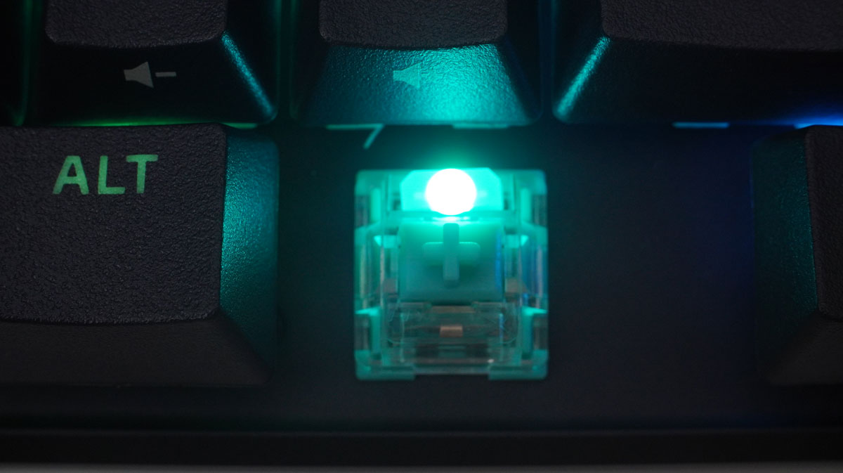 HyperX Aqua este un comutator tactil, ceea ce înseamnă că atunci când este apăsat puteți simți o lovitură chiar înainte de punctul de acționare. În esență, HyperX Aqua este preluarea de către HyperX a foarte popularului switch Cherry MX Brown. HyperX susține că este mai rapid și mai fiabil. Deși forța de acționare rămâne aceeași, HyperX a redus cu 0,2 mm punctul de acționare și distanța totală de deplasare – coborând-o la 1,8 mm și, respectiv, 3,8 mm.