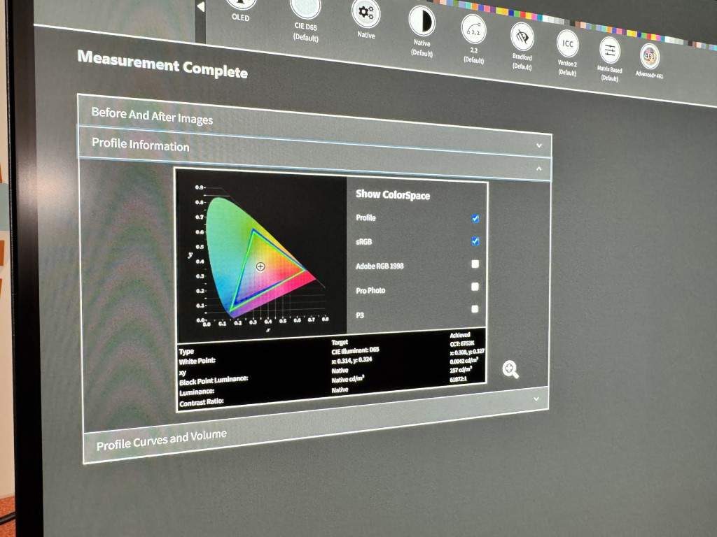 Când vine vorba de reproducerea culorilor, așa cum ne-am aștepta de la un monitor cu matrice OLED, performanța este cu adevărat impresionantă. Panoul suportă o gamă de culori pe 10 biți, ceea ce se traduce într-o acoperire largă din spectrul DCI-P3 și AdobeRGB.