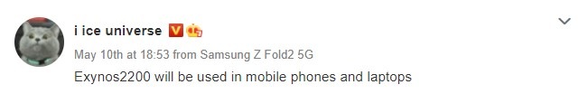 Ice Universe de pe Weibo crede că primul chipset Exynos de la Samsung care va alimenta atât smartphone-uri, cât și laptopuri va fi Exynos 2200. Din păcate, nu au fost oferite detalii specifice, deși a menționat cu ceva timp în urmă că siliciul ar putea fi prezentat în luna iunie a acestui an. Dacă Samsung așteaptă sau nu să folosească SoC-ul în T4, 2021 în produse emblematice este ceva ce vom afla în lunile următoare.