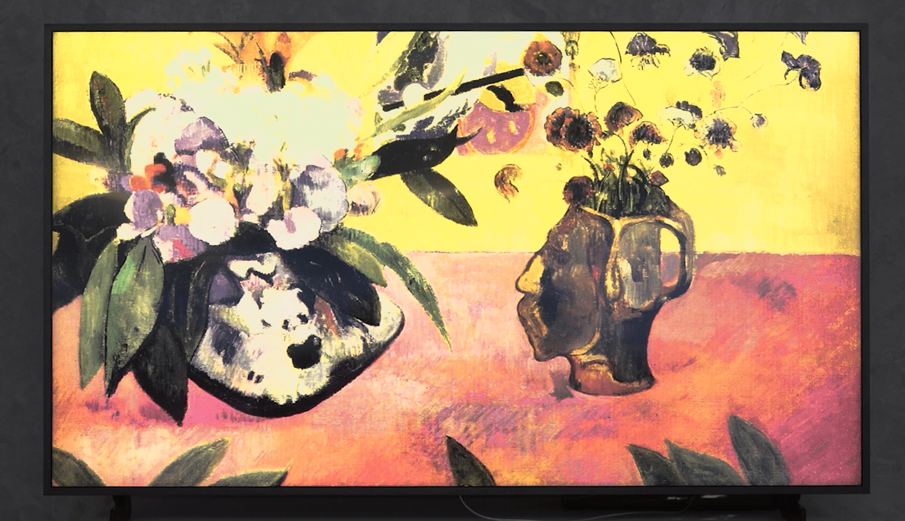 După cum sugerează și numele, acest televizor Samsung a fost făcut să semene cu un tablou. Deși poate fi așezat pe un stand, scenariul ideal este să atârnați acest televizor pe un perete, dar în așa fel încât să poată fi util și ca televizor. Deaoarece este menit să semene cu un tablou, acesta are marginile extrem de subțiri, astfel nu avem parte de aele dungi negre enervante și în plus suportă adăugarea de margini personalizate, asftel încât acesta să arate exact cu un tablou.