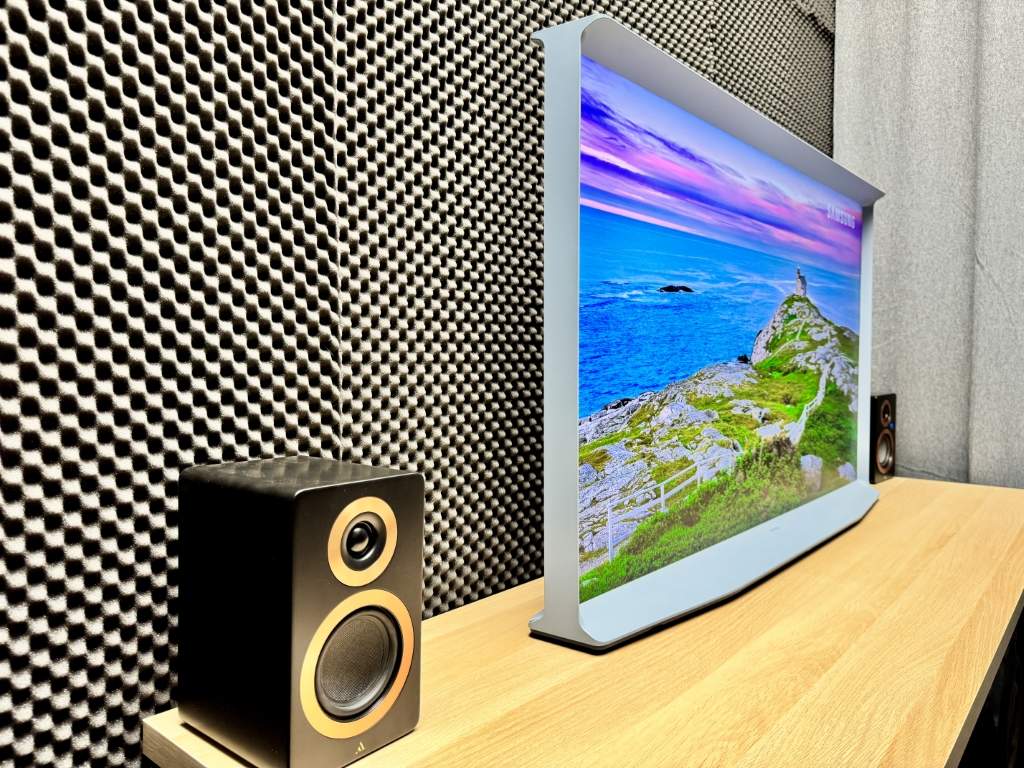 Un aspect remarcabil este display-ul mat (Matte Display), care reduce reflexiile luminii naturale sau artificiale. Acest lucru asigură o experiență de vizionare clară în orice condiții de iluminare. De asemenea, ecranul mat adaugă un efect vizual realist imaginilor afișate, transformând televizorul într-un „tablou digital” atunci când este utilizat în modul Ambient.