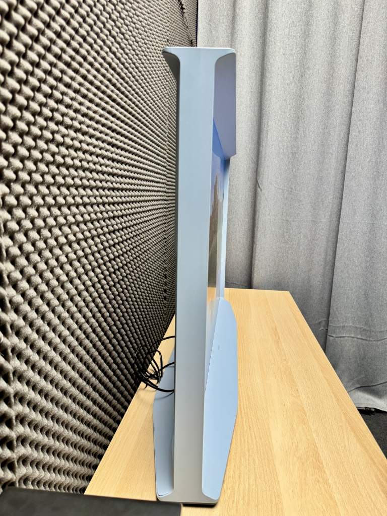 Un alt detaliu de remarcat este panoul din spate care maschează toate porturile, eliminând cablurile vizibile și contribuind la un aspect curat și minimalist. Spre deosebire de televizoarele tradiționale, The Serif poate fi amplasat oriunde în cameră, fără să fie nevoie să fie „ascuns” lângă un perete.