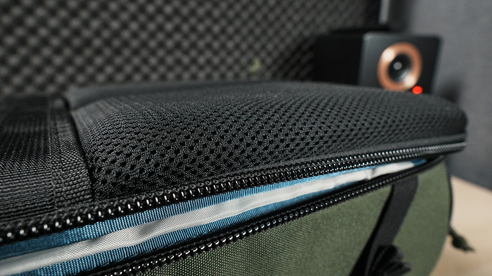 Interiorul nu este doar încăpător, ci și foarte bine protejat. Padding-ul este serios, genul de protecție care te face să respiri liniștit când pui rucsacul jos sau când îl înghesui într-un overhead bin în avion.