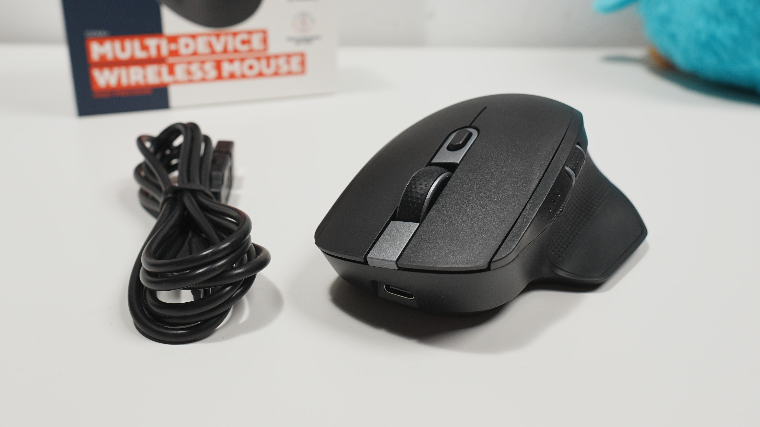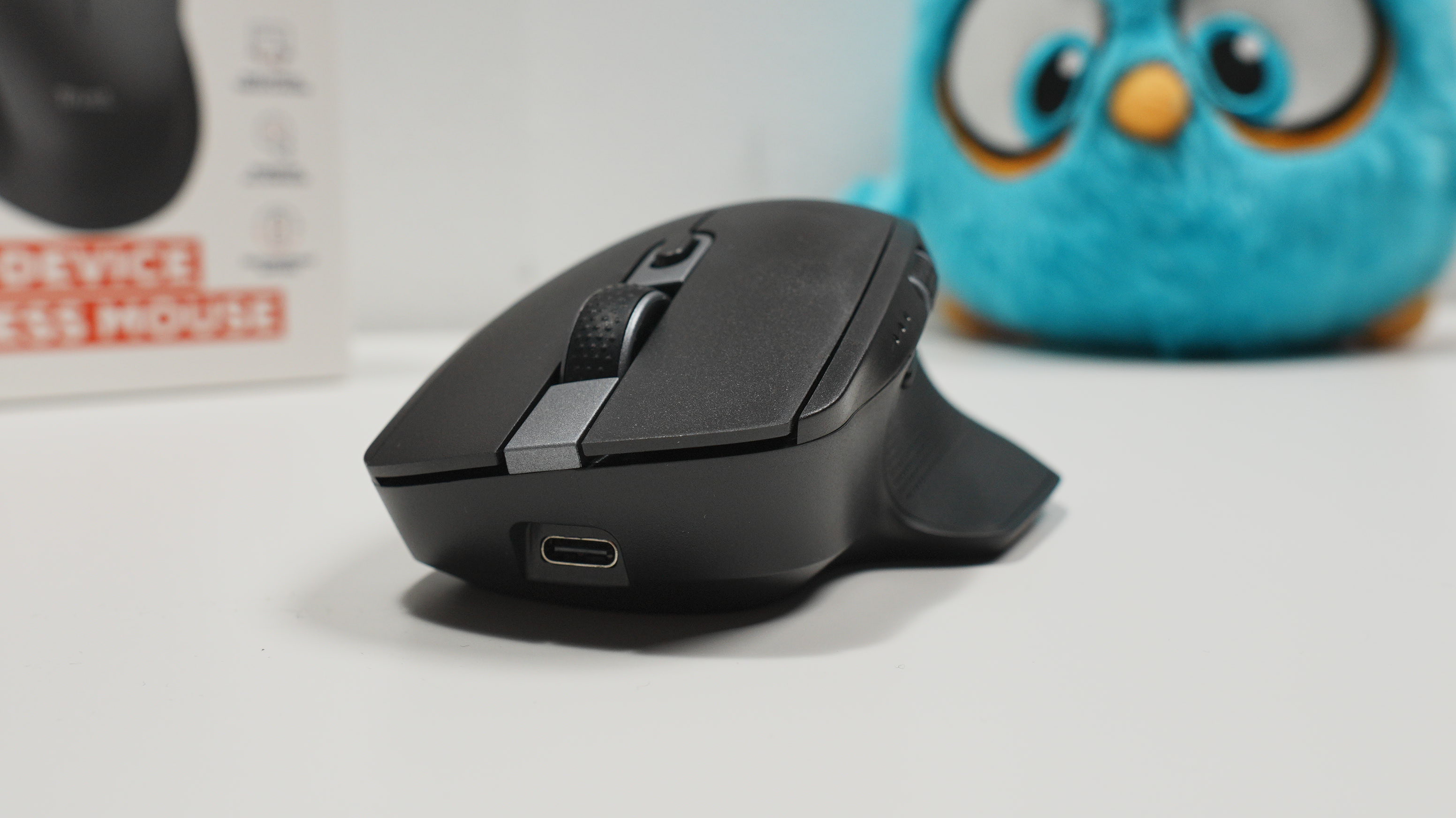 Un alt lucru inteligent integrat este dongle-ul USB-A pentru conexiune wireless la 2.4 GHz. E fixat magnetic în interiorul mouse-ului, așa că nu există riscul să-l pierzi. Pe lângă asta, Ozaa+ suportă și conectivitate Bluetooth cu două dispozitive, ceea ce înseamnă că îl poți conecta la trei device-uri diferite și comuta între ele printr-un buton aflat pe partea inferioară.
