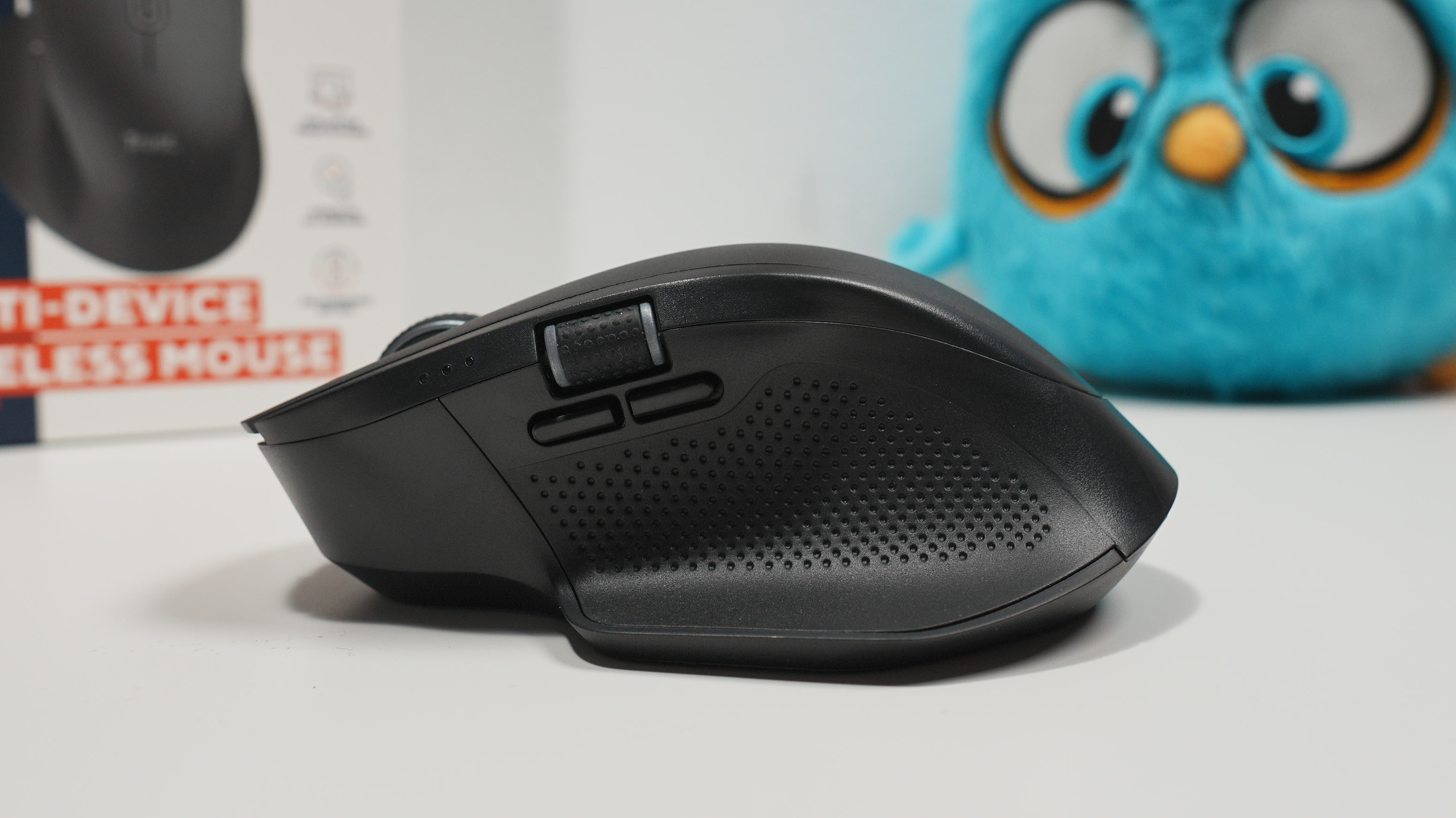 Designul este ergonomic, dar clar orientat către utilizatorii dreptaci. Pe partea stângă se află două butoane laterale poziționate pentru a fi accesate rapid cu degetul mare. Mouse-ul se simte confortabil în palmă, cu o formă plăcut rotunjită care sprijină bine mâna.
