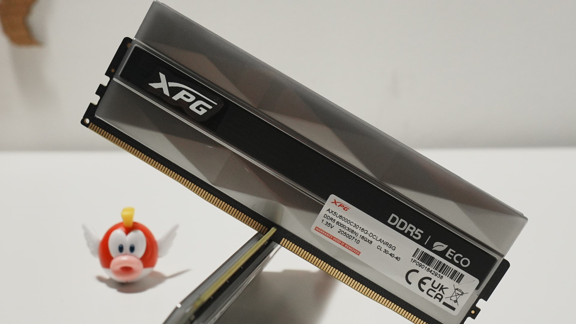 Prima impresie este una de impact vizual. XPG a ales un design complet RGB, dar nu în maniera clasică. Aici nu e vorba doar despre o bandă luminată în partea de sus, întregul corp al modulului funcționează ca un difuzor de lumină, transformând fiecare stick într-o adevărată piesă de spectacol. Luminile ARGB se propagă într-un mod uniform și plăcut datorită unui difuzor prismatic 3D, iar întregul efect este unul care pur și simplu atrage privirea.